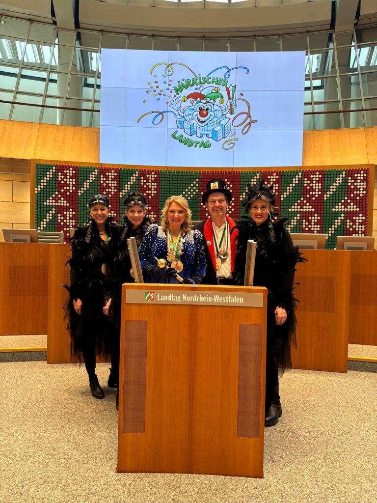 Mit ihrer herzlichen Art, ihrem Humor und ihrem strahlenden Frohsinn waren sie würdige Botschafterinnen des regionalen Karnevals. Nach einer kleinen persönlichen Führung durch den Landtag, nutzte Prinzessin Karin I. (Padlo) die Gelegenheit zu Erinnerungsfotos – unter anderem am Redepult im Plenarsaal.