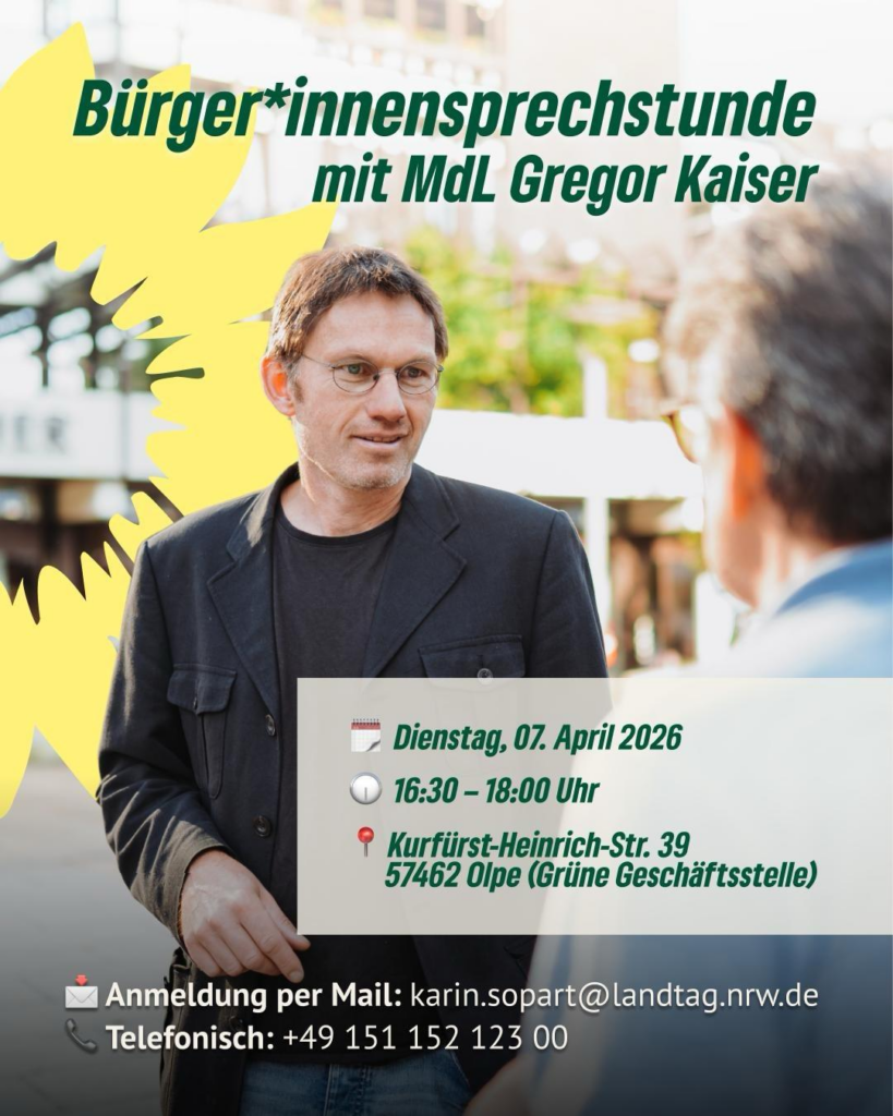📍 Ort: Grüne Geschäftsstelle, Kurfürst-Heinrich-Str. 39, 57462 Olpe